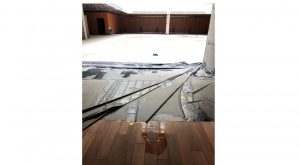 Estamos refiriéndonos a la Plaza España Se hundieron las veredas. Se agrietaron las fuentes. Y entró agua al edificio por...