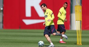 https://images.ole.com.ar/2020/05/19/RaEkcing-_1200x630__1.jpg "Turki, mucha suerte en el partido, eh... Vamos, eh". Vestido con la ropa de entrenamiento del Barcelona, Lionel Messi...