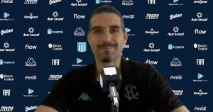 https://images.ole.com.ar/2020/05/18/UZE7Pn0-Y_1200x630__1.jpg "Antes de comenzar, quiero aprovechar para mandarles un fuerte abrazo a todos los racinguistas". Delante de una cámara, sentado...